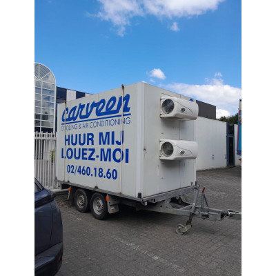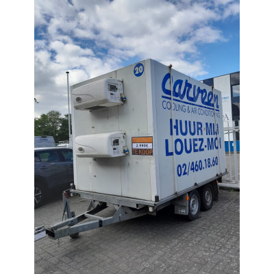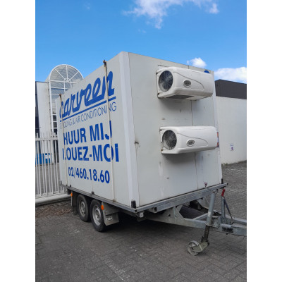 Professionelle Kühlzelle auf einem Doppelachs-Anhänger, konzipiert für intensive und mobile Nutzung.