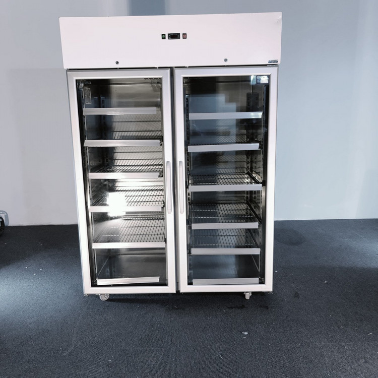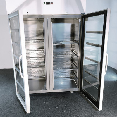 Unser Glas-Gefrierschrank lagert Ihre Produkte mit einem Fassungsvermögen von 1.400 l und ist dank automatischer Abtauung und 60-mm-Isolierung sicher. Mit Tasten.