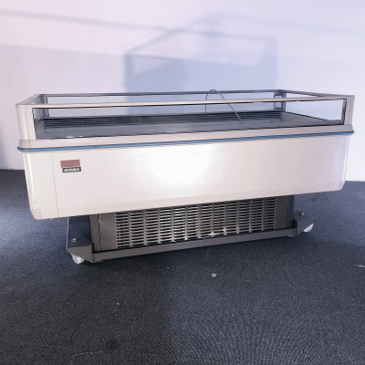 Offene Insel mit 4 glasierten Seiten für Milchprodukte, frische und alle vorverpackten Produkte. belüftete Kälte.