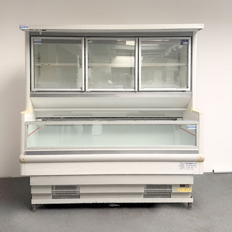 Avec notre armoire murale réfrigéré combiné. Vous pouvez mettre en valeur vos produits frais dans le frigo du haut et vos produits surgelés dans le congélateur du bas.
