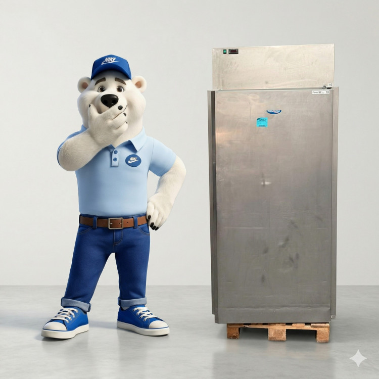 Professionele roestvrijstalen koelarmoire met één draaideur en een ruime binnenkant.