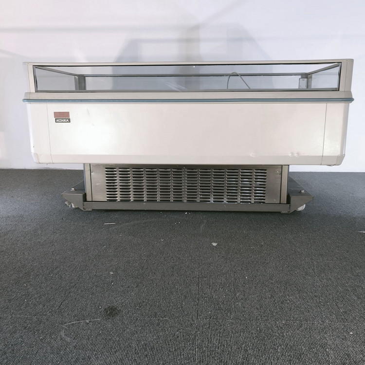 Open eiland met 4 glaszijden, ontworpen voor zuivelproducten, vers en alle voorverpakte producten. geventileerd koud.